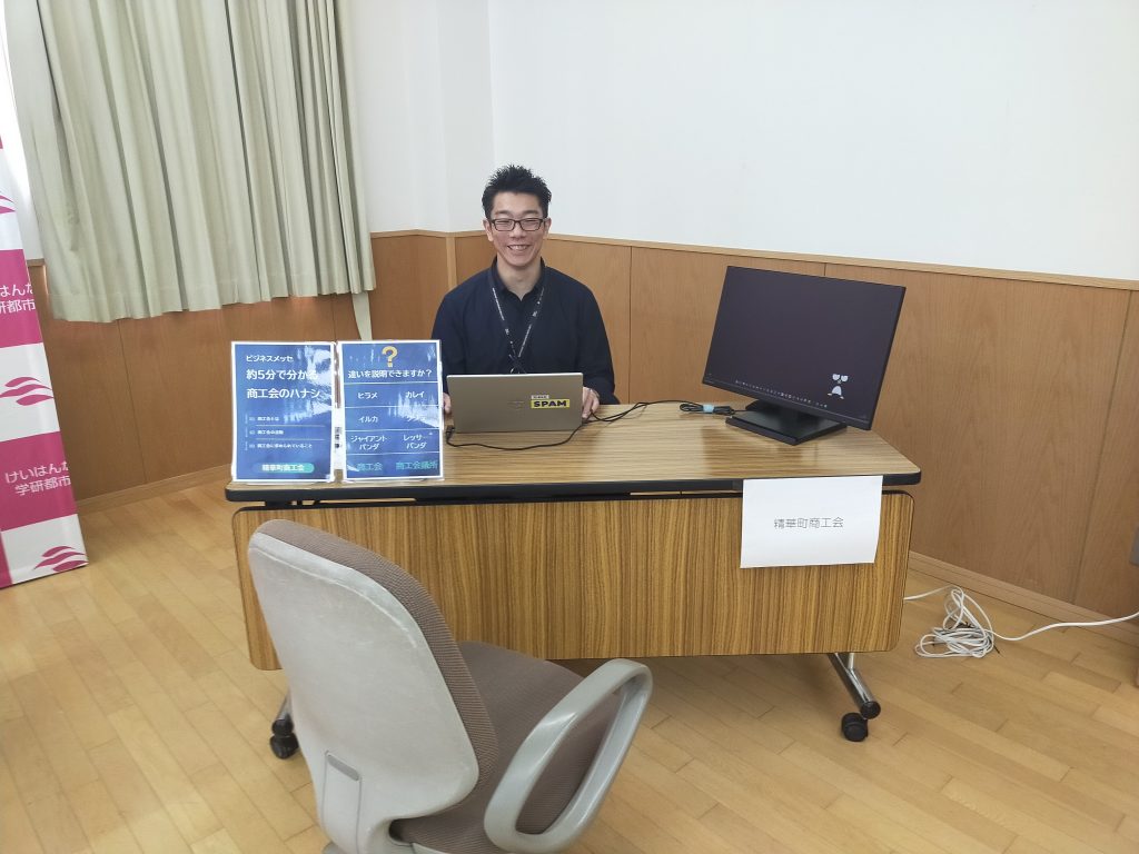 今回は横並びのブース配置ではなく、それぞれの事業分野エリアに分かれての展示となりました。各ブースでの取り組みは次のとおりですが、精華町商工会&SSCブースでは昨年に続いて会員企業のパンフレット配布やスタンプラリーについても実施しました。