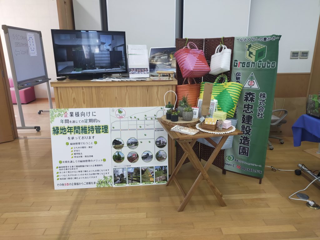 精華町商工会&SSCの合同ブースと株式会社森忠建設造園のブース出展に取り組みました。